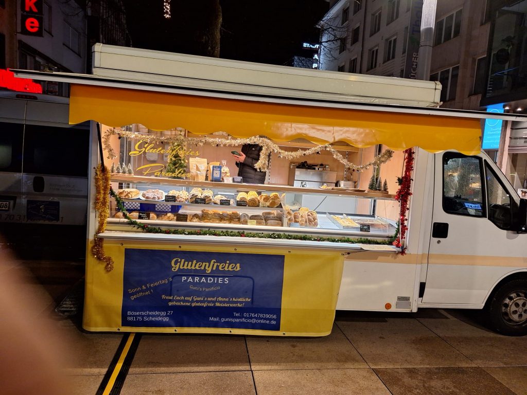 Unterwegs mit Guni’s Panificio – unsere glutenfreien Spezialitäten finden Sie nicht nur in unserer Bäckerei, sondern auch auf ausgewählten Märkten. In unserer Galerie nehmen wir Sie mit auf eine kleine Reise zu den Orten, an denen wir mit unserem Verkaufswagen frisches Brot, feine Kuchen und herzhafte Snacks anbieten. Zwischen bunten Ständen, duftenden Köstlichkeiten und strahlenden Gesichtern zeigen wir Ihnen die besondere Marktstimmung, in der unsere Produkte entstehen und genossen werden.